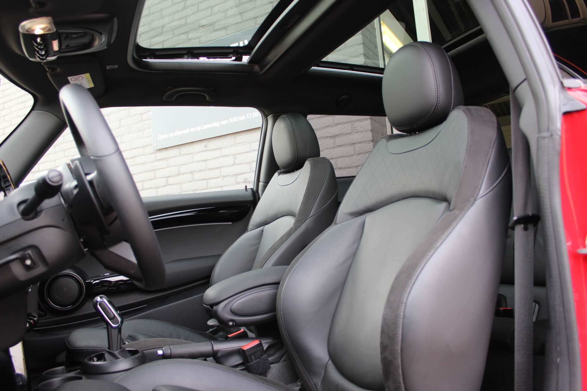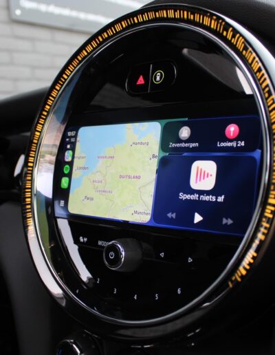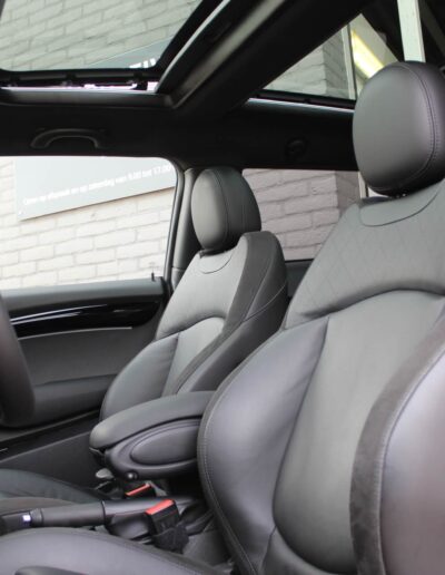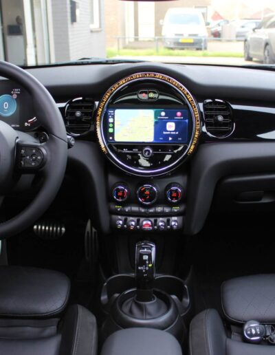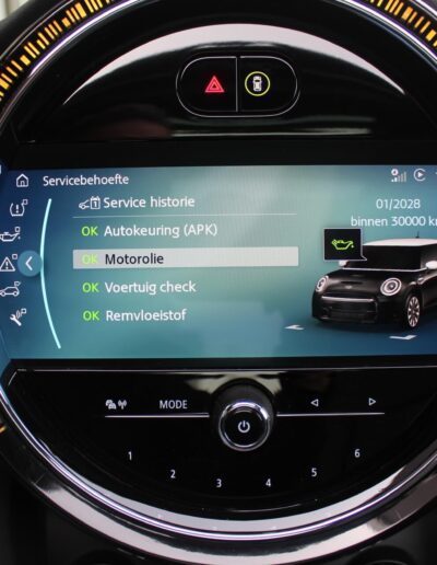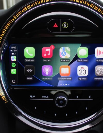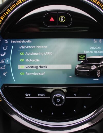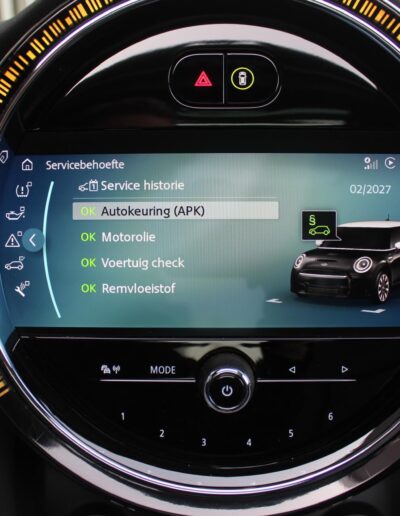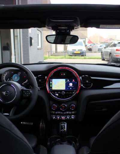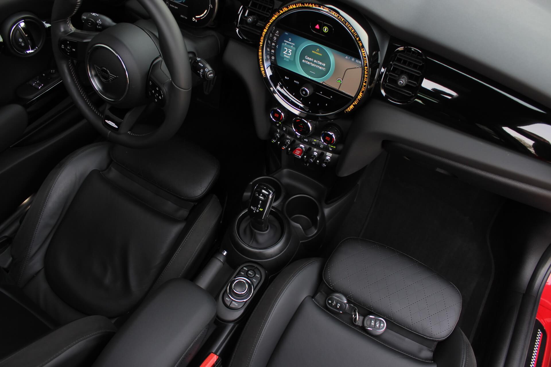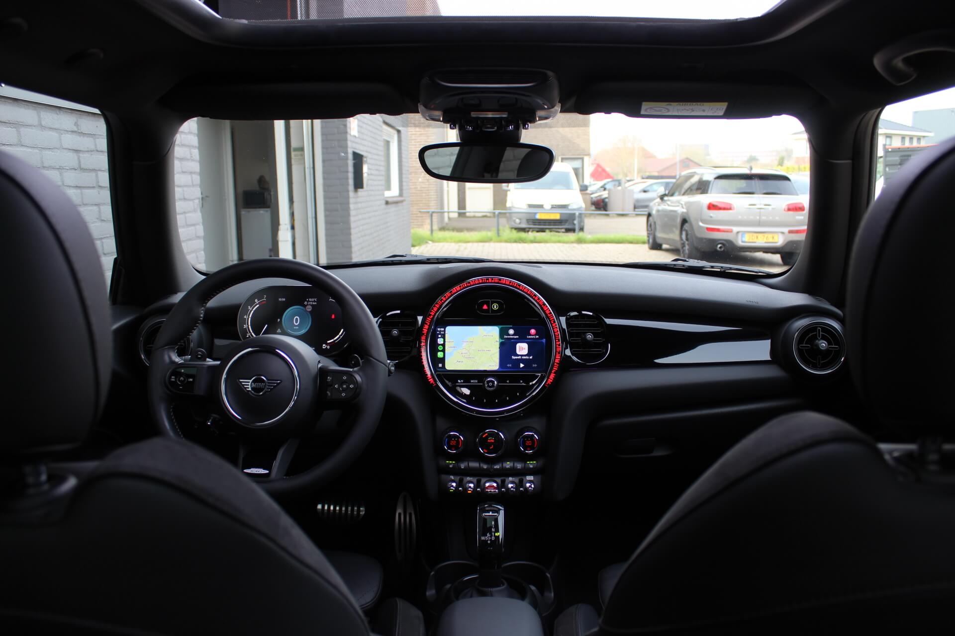 Rijkelijk voorzien van mooie opties, waaronder het stoere John Cooper Works Aeropakket, 7DCT automatische transmissie, dubbel panoramadak, 17 inch “Track Spoke Black” velgen met rondom goede Goodyear vierseizoensbanden, zwart lederen bekleding, LED-koplampen met automatische grootlichtassistent, modern multifunctioneel digitaal instrumentarium, instelbare rijmodi met dito schokdempers, “Comfort Access” sleutelvrije toegang en starten, diverse rijassistentiesystemen, stoelverwarming, een verwarmbaar stuurwiel met schakelflippers, groot touchscreen infotainmentsysteem met navigatie en Apple Carplay, spiegelpakket, instelbare sfeerverlichting, hoogglans zwarte interieurlijsten, privacy glass vanaf de B-stijl, parkeersensoren rondom met automatische inparkeerfunctie, regen- en lichtsensor, DAB-tuner, gescheiden automatische klimaatregeling, MINI-projectieverlichting in de spiegelbehuizingen, etc. etc.