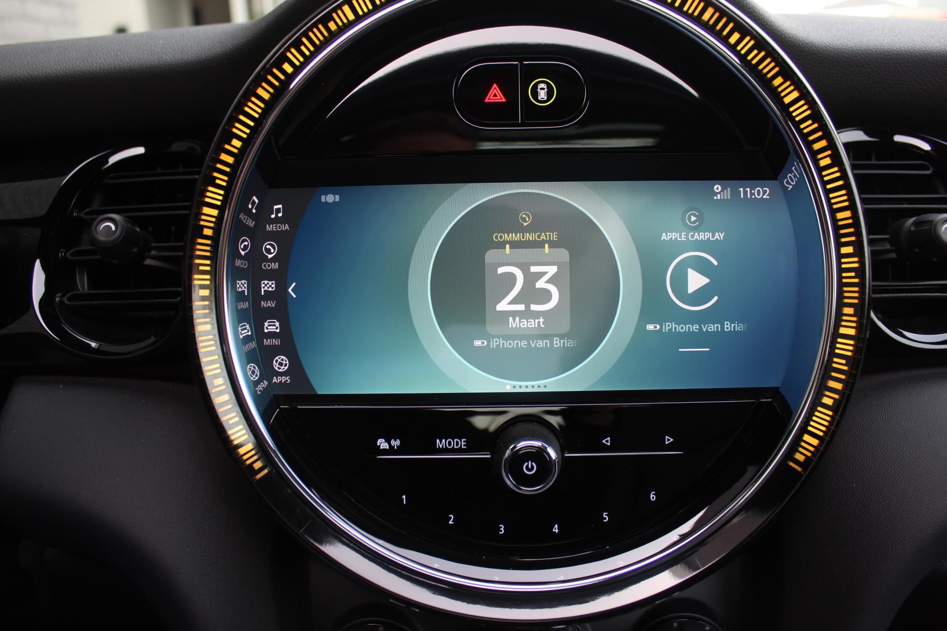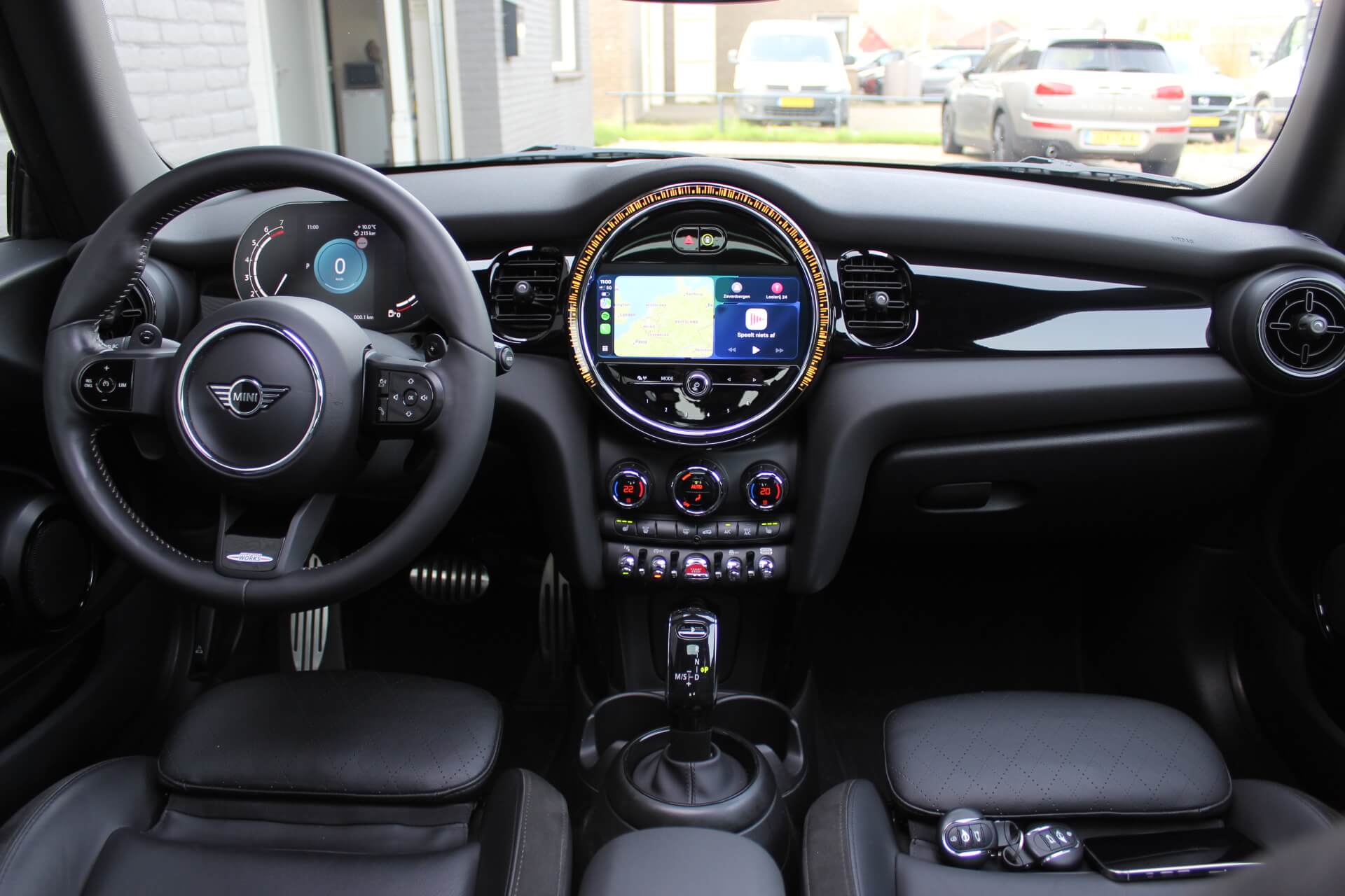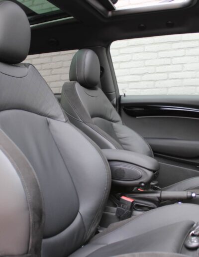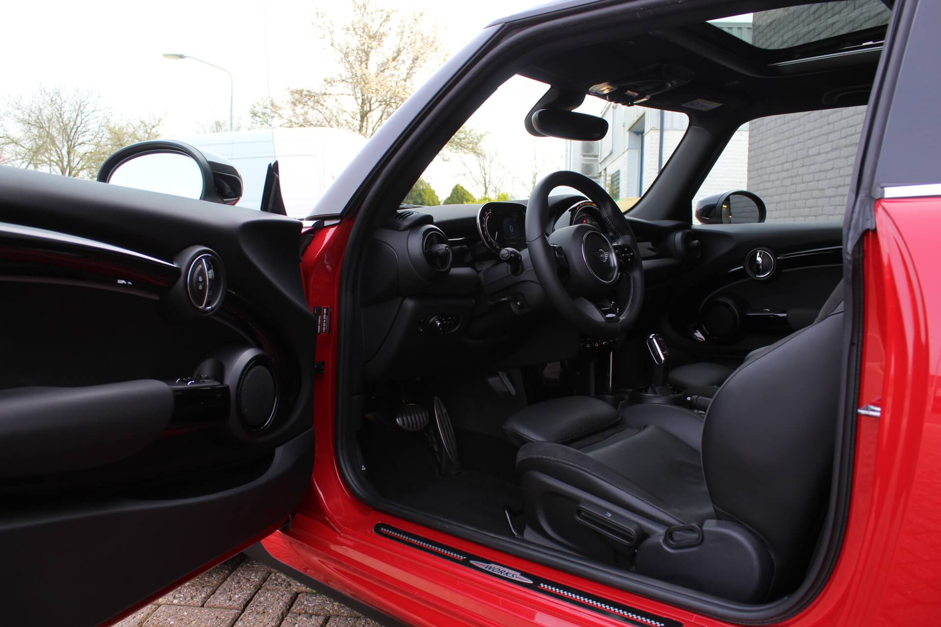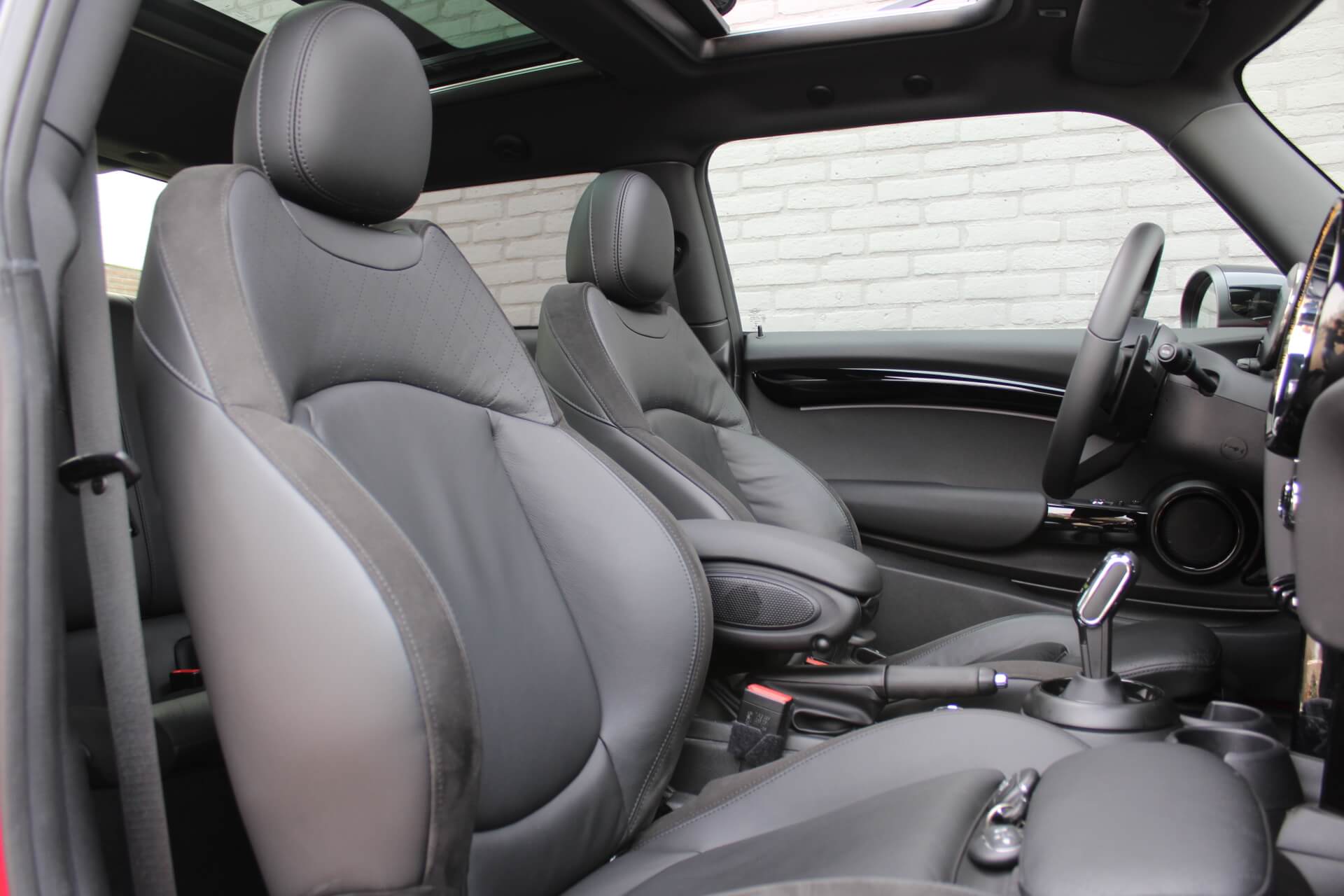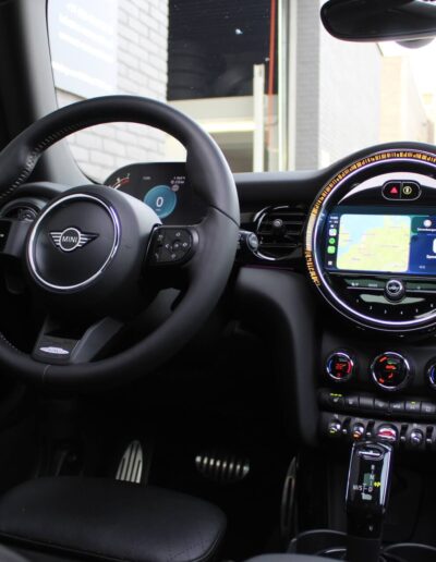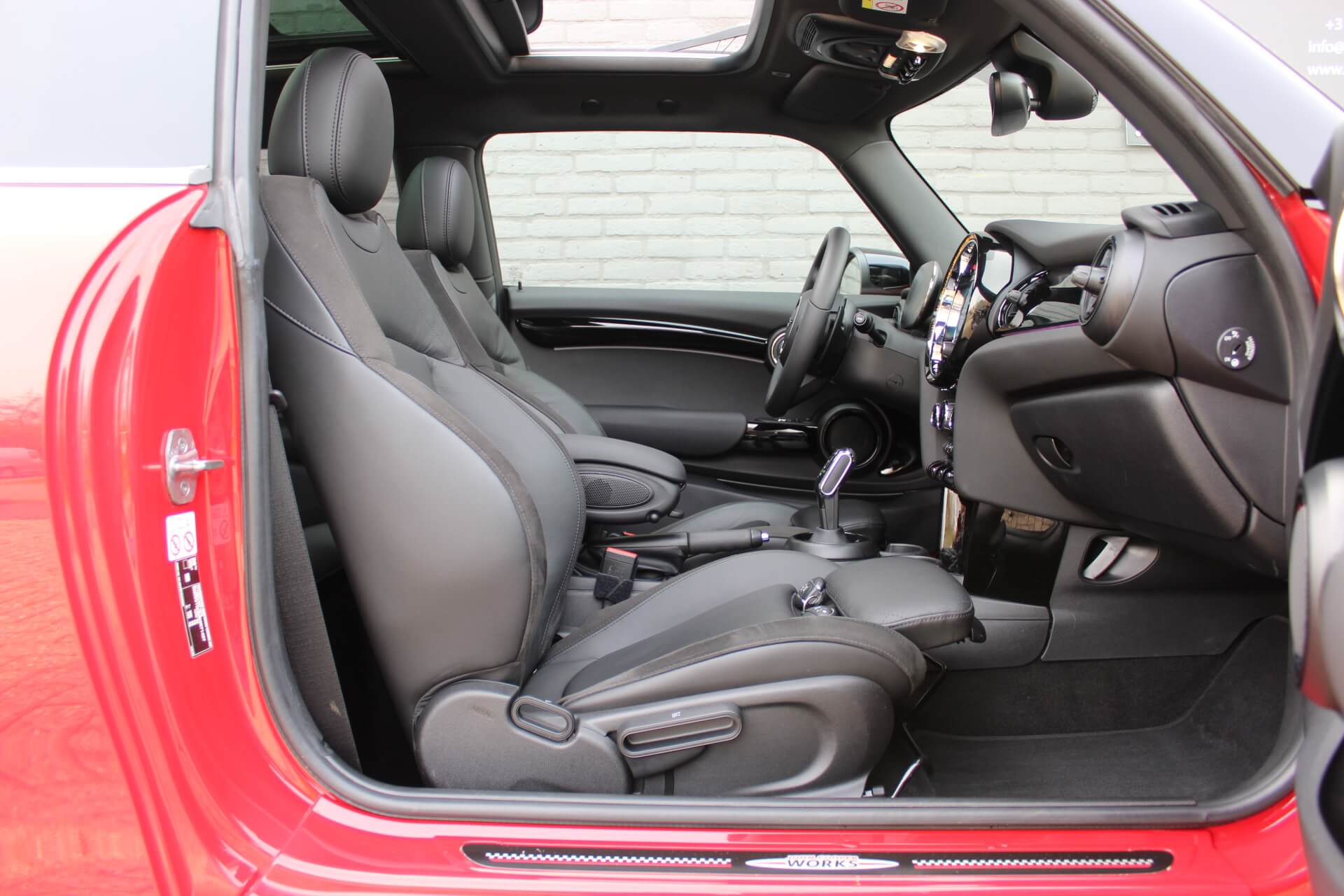 Rijkelijk voorzien van mooie opties, waaronder het stoere John Cooper Works Aeropakket, 7DCT automatische transmissie, dubbel panoramadak, 17 inch “Track Spoke Black” velgen met rondom goede Goodyear vierseizoensbanden, zwart lederen bekleding, LED-koplampen met automatische grootlichtassistent, modern multifunctioneel digitaal instrumentarium, instelbare rijmodi met dito schokdempers, “Comfort Access” sleutelvrije toegang en starten, diverse rijassistentiesystemen, stoelverwarming, een verwarmbaar stuurwiel met schakelflippers, groot touchscreen infotainmentsysteem met navigatie en Apple Carplay, spiegelpakket, instelbare sfeerverlichting, hoogglans zwarte interieurlijsten, privacy glass vanaf de B-stijl, parkeersensoren rondom met automatische inparkeerfunctie, regen- en lichtsensor, DAB-tuner, gescheiden automatische klimaatregeling, MINI-projectieverlichting in de spiegelbehuizingen, etc. etc.