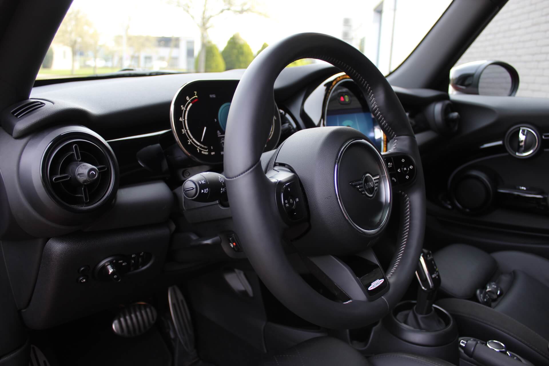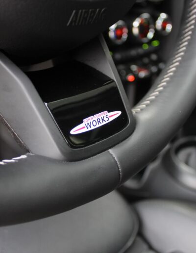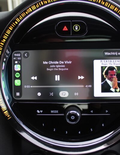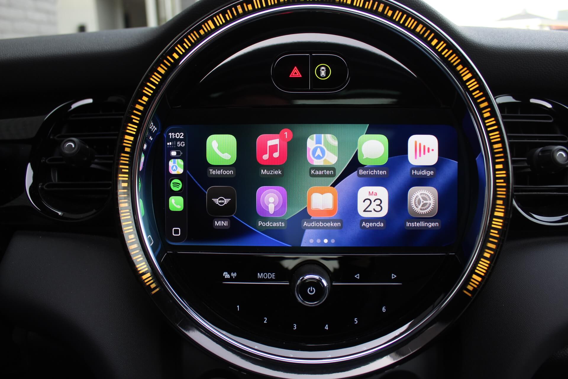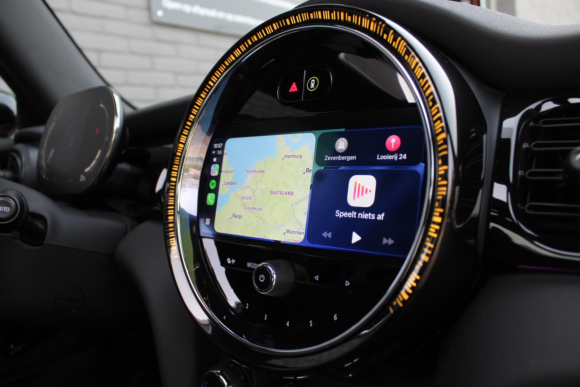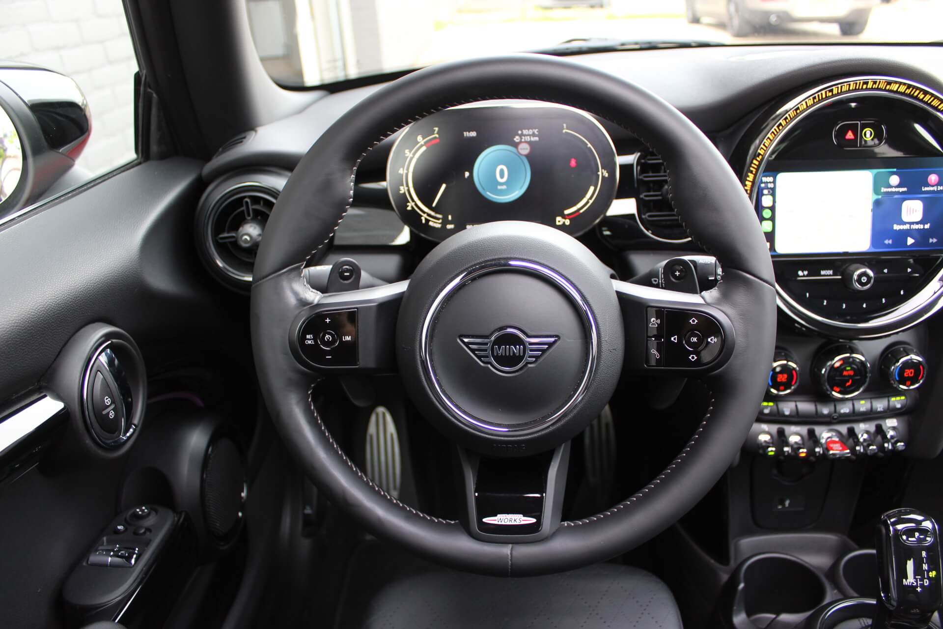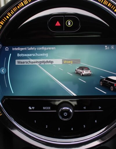 Rijkelijk voorzien van mooie opties, waaronder het stoere John Cooper Works Aeropakket, 7DCT automatische transmissie, dubbel panoramadak, 17 inch “Track Spoke Black” velgen met rondom goede Goodyear vierseizoensbanden, zwart lederen bekleding, LED-koplampen met automatische grootlichtassistent, modern multifunctioneel digitaal instrumentarium, instelbare rijmodi met dito schokdempers, “Comfort Access” sleutelvrije toegang en starten, diverse rijassistentiesystemen, stoelverwarming, een verwarmbaar stuurwiel met schakelflippers, groot touchscreen infotainmentsysteem met navigatie en Apple Carplay, spiegelpakket, instelbare sfeerverlichting, hoogglans zwarte interieurlijsten, privacy glass vanaf de B-stijl, parkeersensoren rondom met automatische inparkeerfunctie, regen- en lichtsensor, DAB-tuner, gescheiden automatische klimaatregeling, MINI-projectieverlichting in de spiegelbehuizingen, etc. etc.