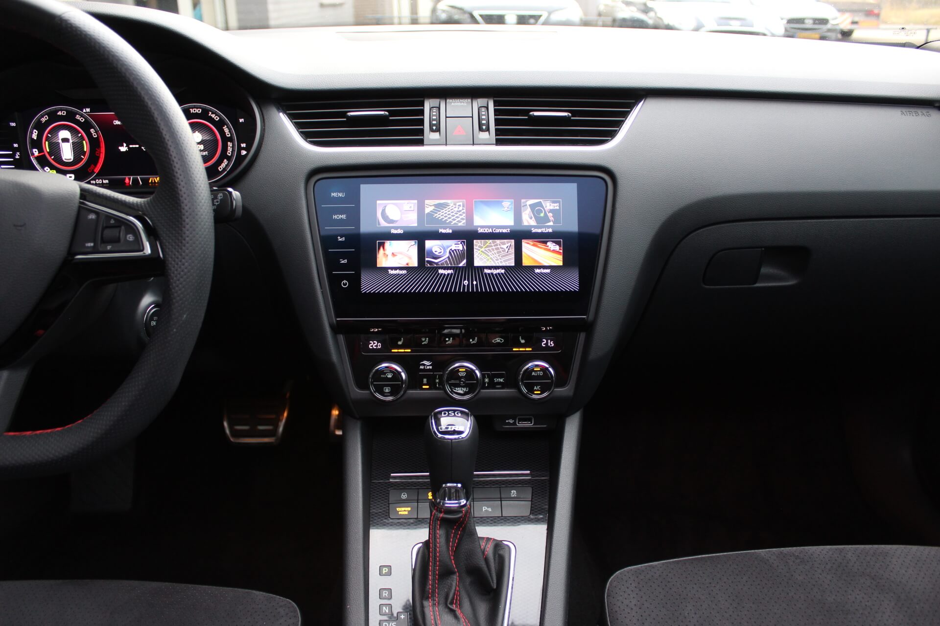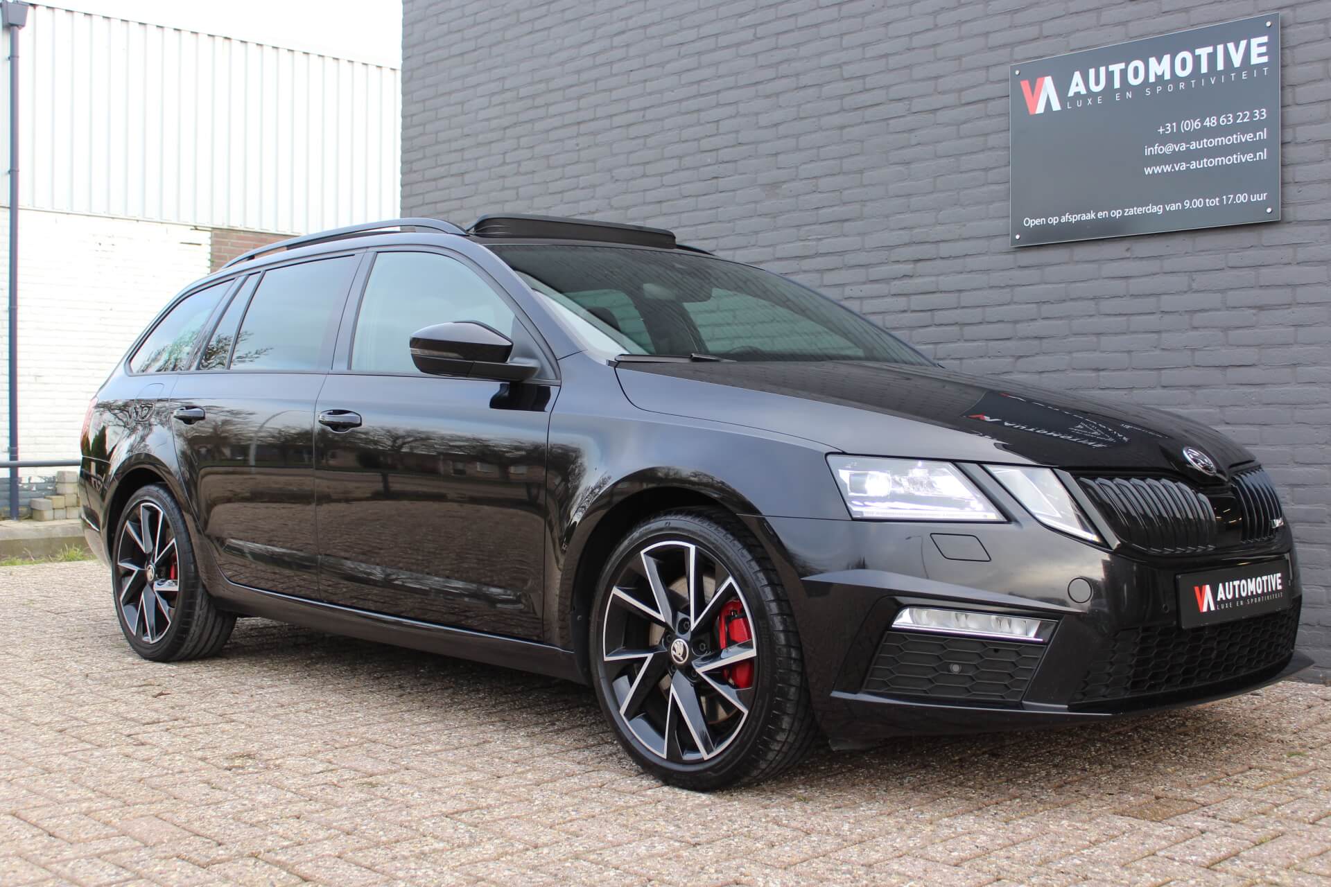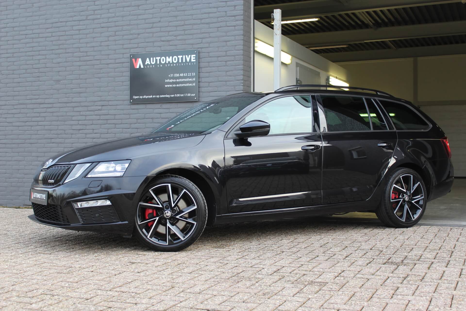 Bijna full options 2019 Skoda Octavia Combi RS 245 DSG! Afkomstig van eerste eigenaar, onderhouden bij de Skoda-dealer en voorzien van nieuw onderhoud.