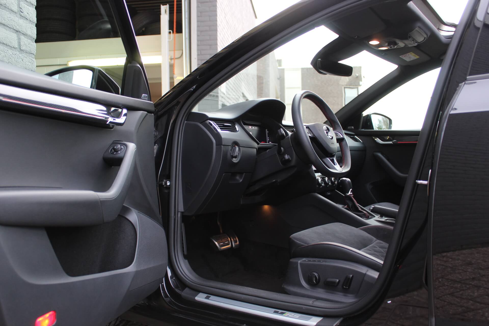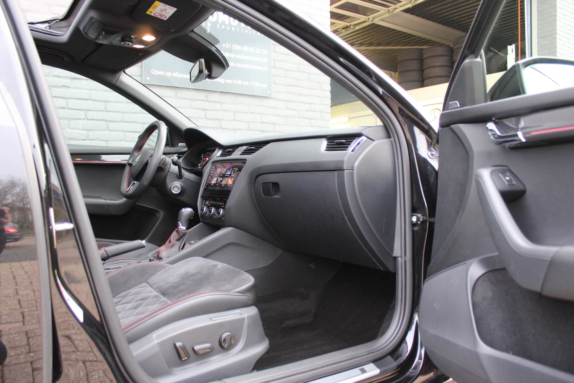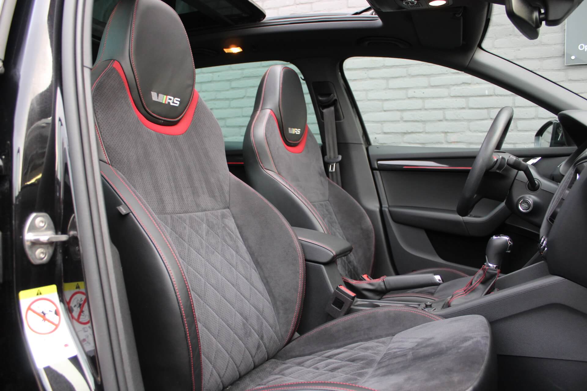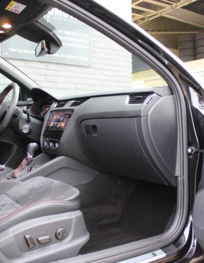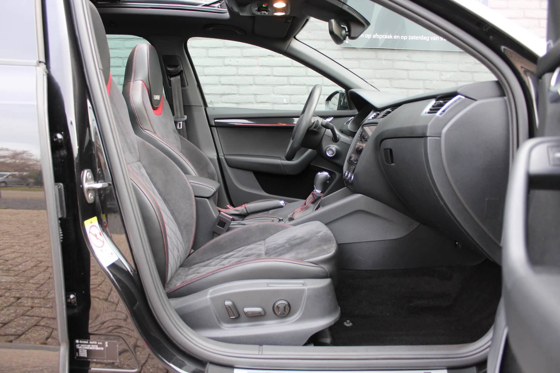 De auto is voorzien van panoramadak, bi-xenon/LED-koplampen met automatische grootlichtassistent, modern en ruim instelbaar digitaal instrumentarium, de stoere en tevens schadevrije 18 inch “Vega Platin” lichtmetalen velgen met rondom Bridgestones, “DCC” instelbare schokdempers, alcantara met lederen interieur en contrasterende stiksels, elektrisch verstelbare kuipstoelen met geheugenfunctie, adaptieve cruise control met diverse rijassistentiesystemen, originele Skoda standkachel met afstandsbediening, achteruitrijcamera, “Canton” audiosysteem, privacy glass vanaf de B-stijl, parkeersensoren rondom, winterpakket met een verwarmbaar afgevlakt stuurwiel met schakelflippers, vier verwarmbare zitplaatsen én verwarmbare voorruit, ruim instelbare interieursfeerverlichting, “Kessy” sleutelvrije toegang en starten, elektrisch bedienbare kofferruimteklep, uitgebreid touchscreen infotainmentsysteem “Columbus” met Mirror Link (Apple Carplay e.d.), gescheiden automatische klimaatregeling, spiegelpakket met automatisch in- en neerklapbare, dimmende en verwarmde functie, draadloze telefoonlader, instelbare rijmodi, DAB-tuner, regen- en lichtsensor, etc. etc.