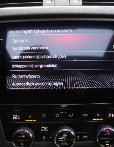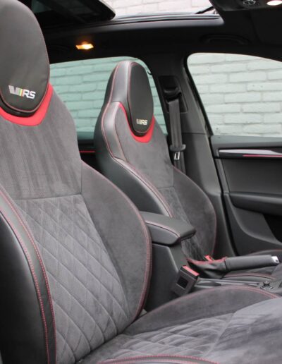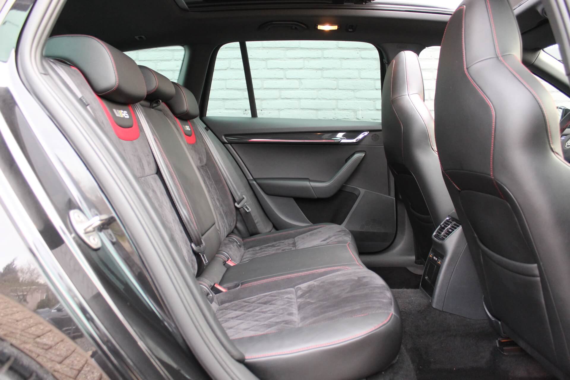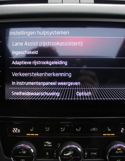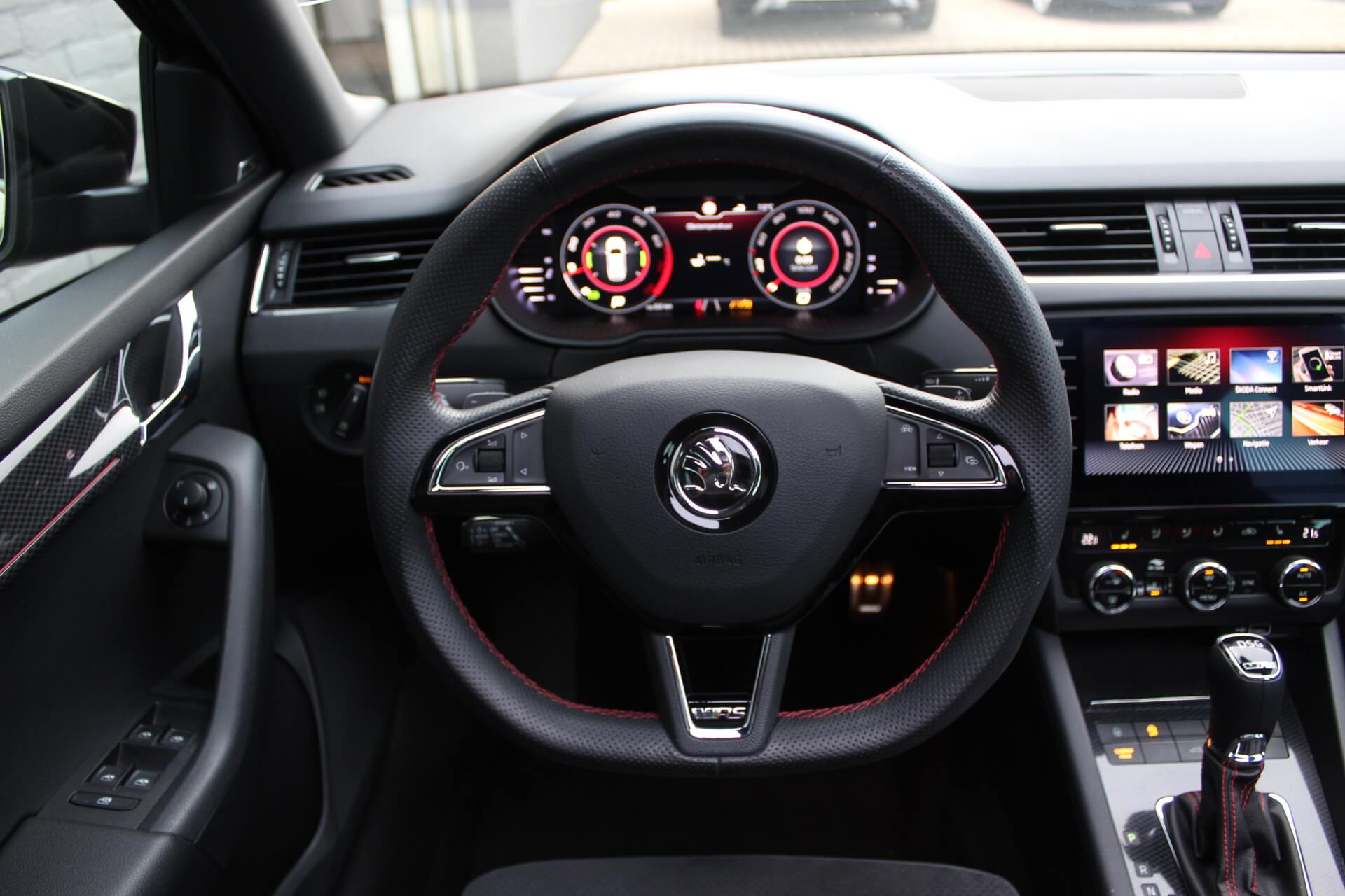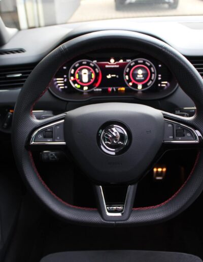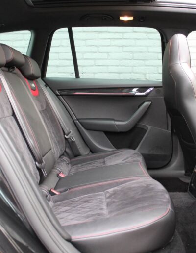 De auto is voorzien van panoramadak, bi-xenon/LED-koplampen met automatische grootlichtassistent, modern en ruim instelbaar digitaal instrumentarium, de stoere en tevens schadevrije 18 inch “Vega Platin” lichtmetalen velgen met rondom Bridgestones, “DCC” instelbare schokdempers, alcantara met lederen interieur en contrasterende stiksels, elektrisch verstelbare kuipstoelen met geheugenfunctie, adaptieve cruise control met diverse rijassistentiesystemen, originele Skoda standkachel met afstandsbediening, achteruitrijcamera, “Canton” audiosysteem, privacy glass vanaf de B-stijl, parkeersensoren rondom, winterpakket met een verwarmbaar afgevlakt stuurwiel met schakelflippers, vier verwarmbare zitplaatsen én verwarmbare voorruit, ruim instelbare interieursfeerverlichting, “Kessy” sleutelvrije toegang en starten, elektrisch bedienbare kofferruimteklep, uitgebreid touchscreen infotainmentsysteem “Columbus” met Mirror Link (Apple Carplay e.d.), gescheiden automatische klimaatregeling, spiegelpakket met automatisch in- en neerklapbare, dimmende en verwarmde functie, draadloze telefoonlader, instelbare rijmodi, DAB-tuner, regen- en lichtsensor, etc. etc.