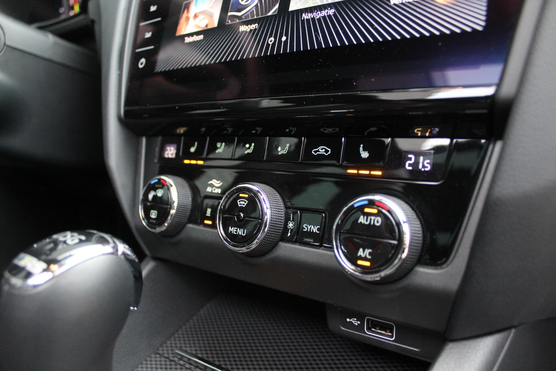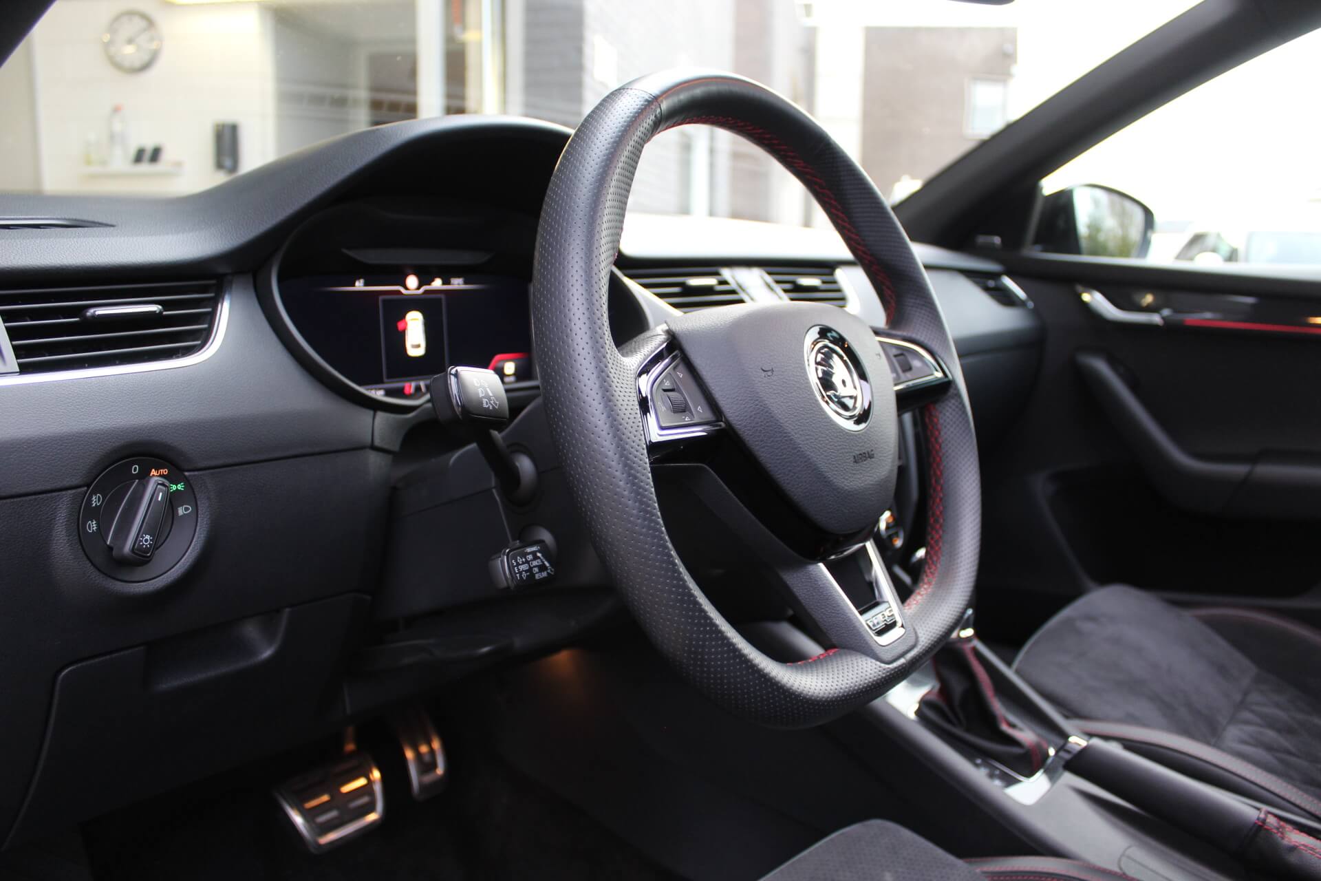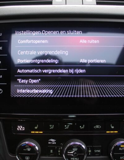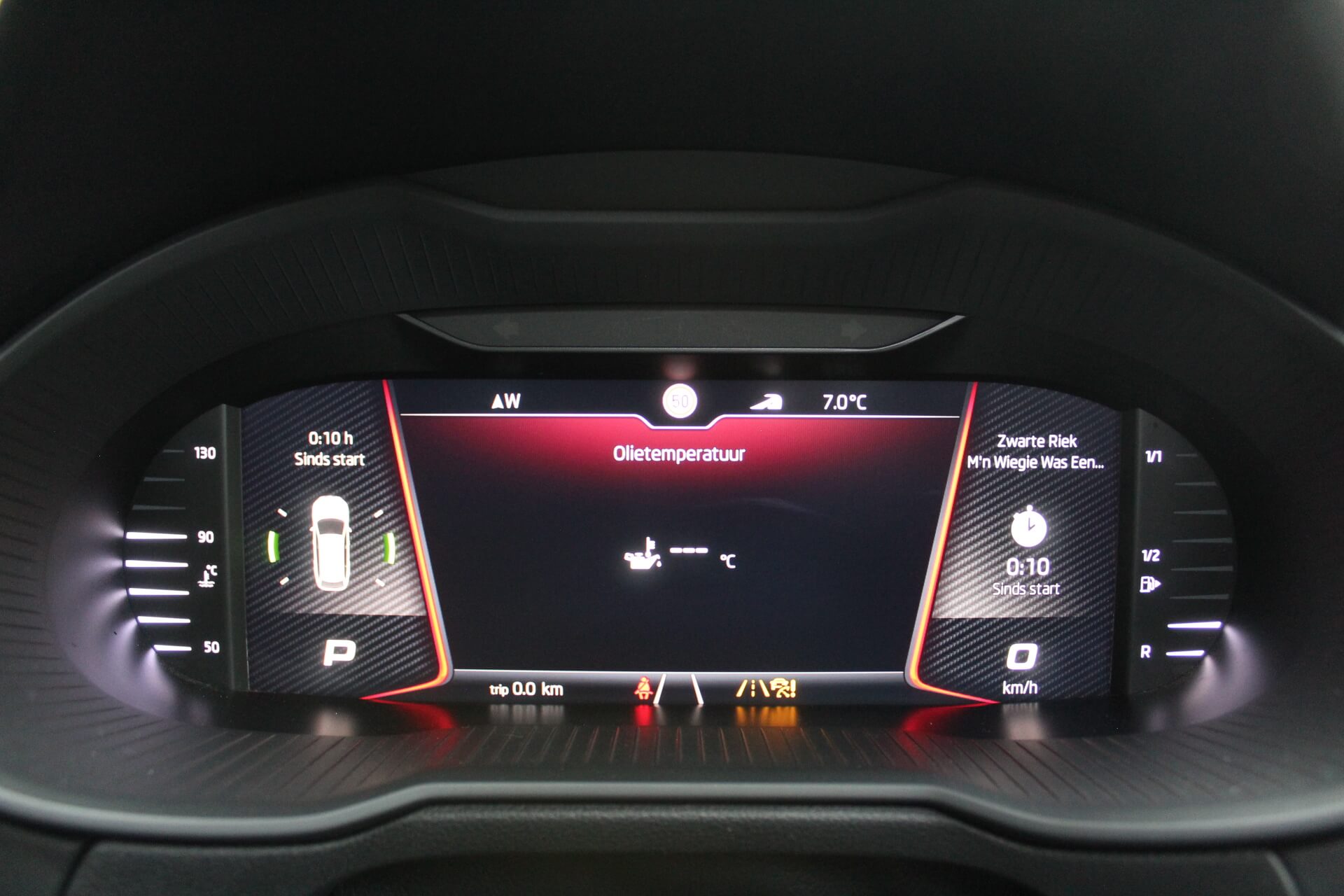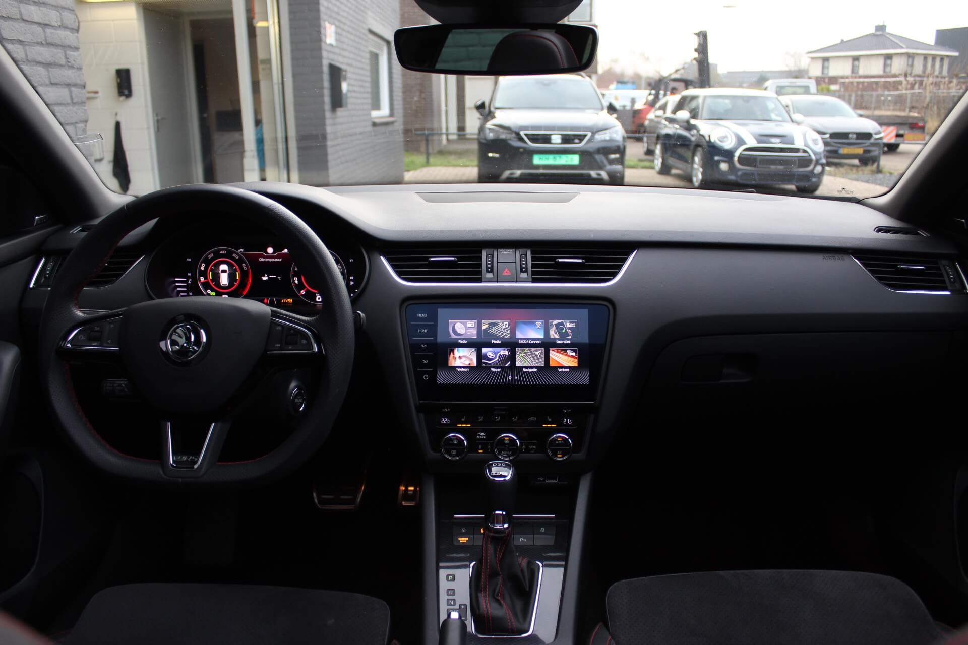 De auto is voorzien van panoramadak, bi-xenon/LED-koplampen met automatische grootlichtassistent, modern en ruim instelbaar digitaal instrumentarium, de stoere en tevens schadevrije 18 inch “Vega Platin” lichtmetalen velgen met rondom Bridgestones, “DCC” instelbare schokdempers, alcantara met lederen interieur en contrasterende stiksels, elektrisch verstelbare kuipstoelen met geheugenfunctie, adaptieve cruise control met diverse rijassistentiesystemen, originele Skoda standkachel met afstandsbediening, achteruitrijcamera, “Canton” audiosysteem, privacy glass vanaf de B-stijl, parkeersensoren rondom, winterpakket met een verwarmbaar afgevlakt stuurwiel met schakelflippers, vier verwarmbare zitplaatsen én verwarmbare voorruit, ruim instelbare interieursfeerverlichting, “Kessy” sleutelvrije toegang en starten, elektrisch bedienbare kofferruimteklep, uitgebreid touchscreen infotainmentsysteem “Columbus” met Mirror Link (Apple Carplay e.d.), gescheiden automatische klimaatregeling, spiegelpakket met automatisch in- en neerklapbare, dimmende en verwarmde functie, draadloze telefoonlader, instelbare rijmodi, DAB-tuner, regen- en lichtsensor, etc. etc.